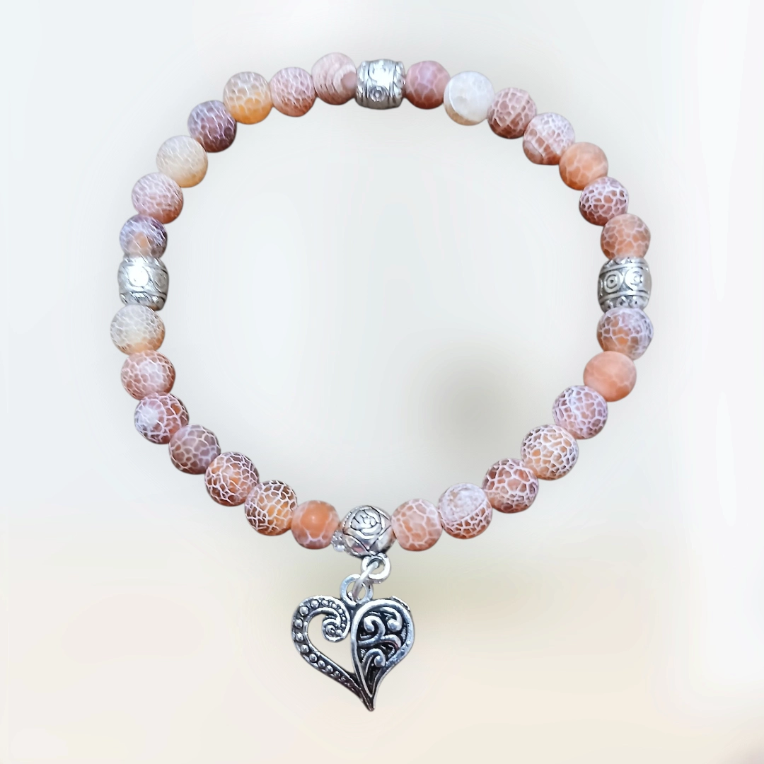 Roppantott vörös achát karkötő.