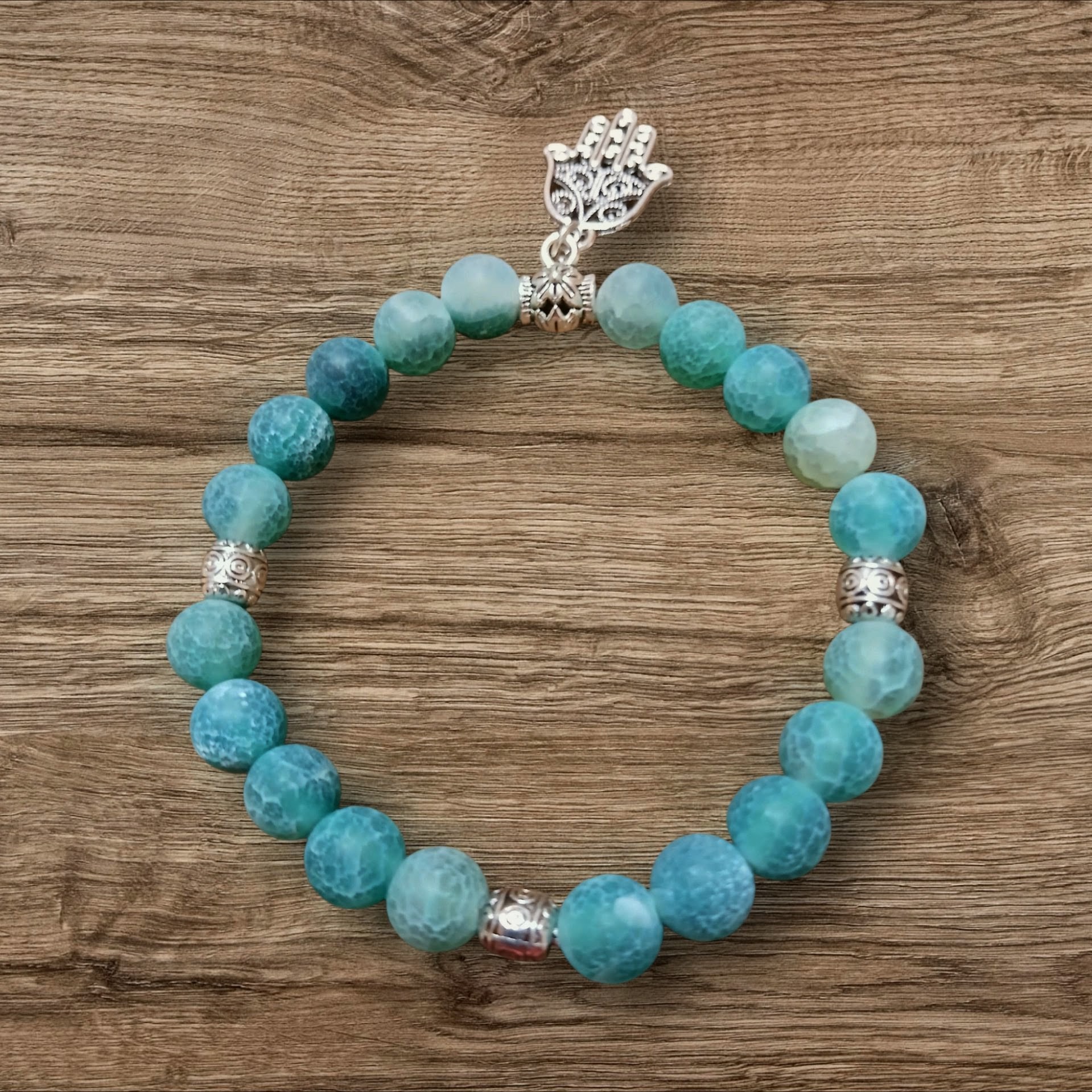 Roppantott zöld achát karkötő. 8mm.